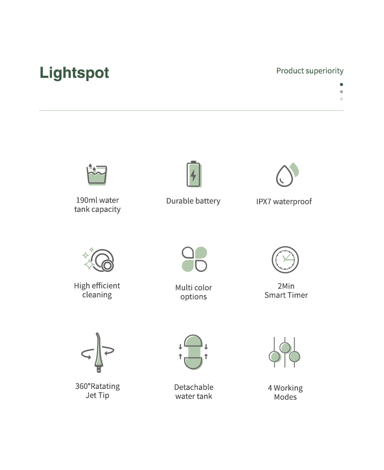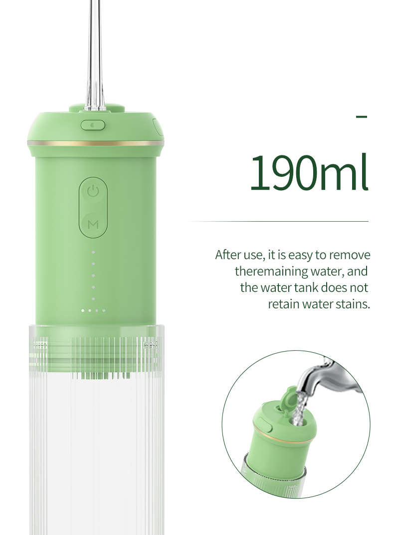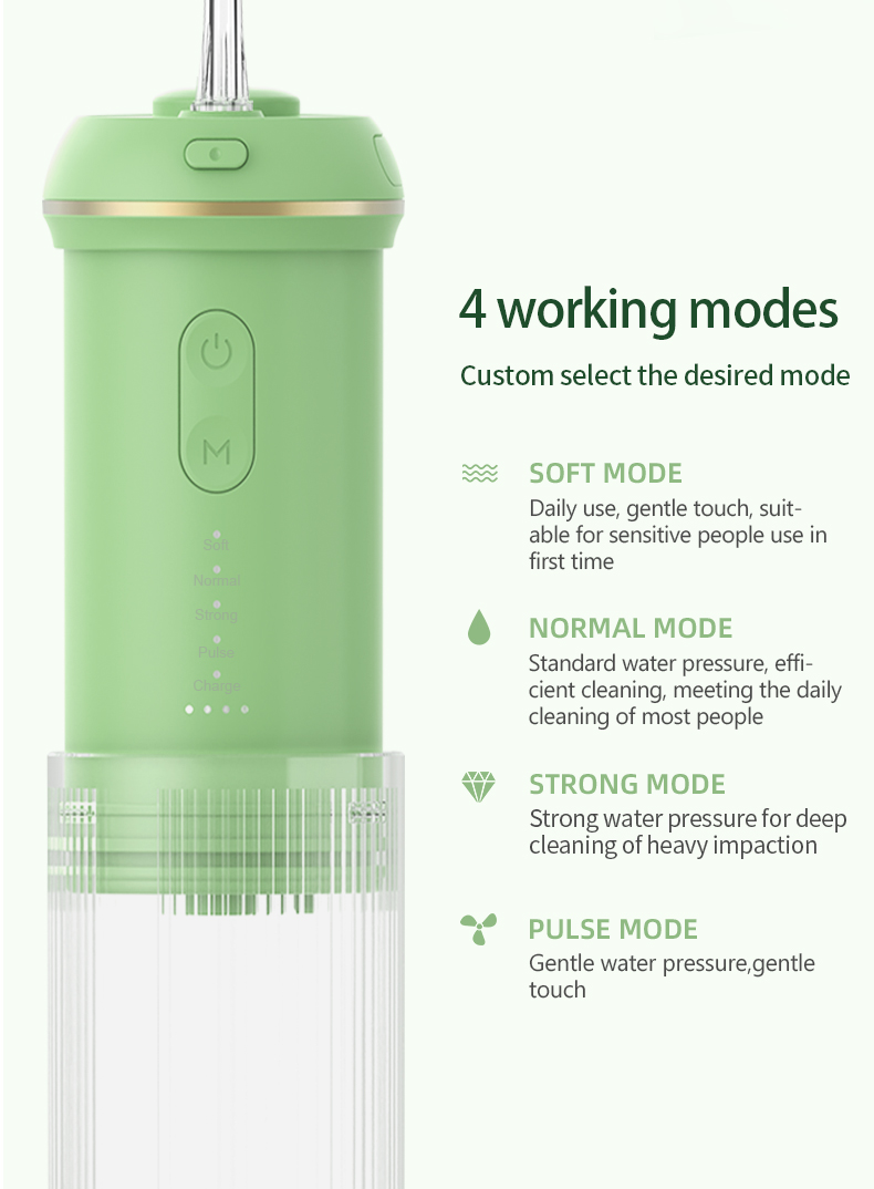 強力な圧力による徹底洗浄: ウォーターフロッサーは最新のパルス技術を採用し、圧力範囲 30~90 Psi、パルスレート 1400~1800 回/分の 4 つのモードを提供し、歯周炎や歯列矯正用に特別に設計された、歯の負担を 99.99% 除去する強力な水を提供します。