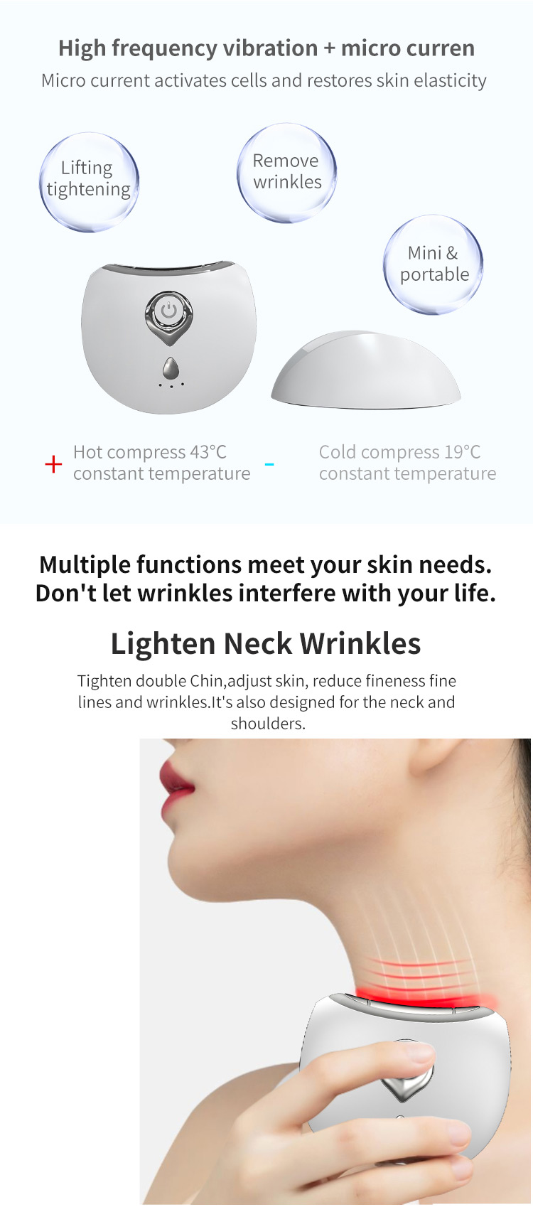 EMSと高周波振動で小じわを滑らかにし、首のしわを取り除きます