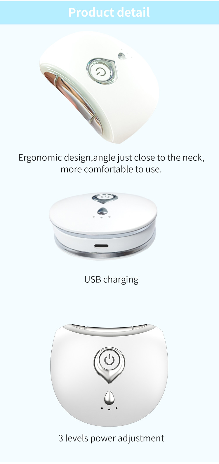 人間工学に基づいたデザイン、首にぴったり合う角度で、より快適に使用できます。