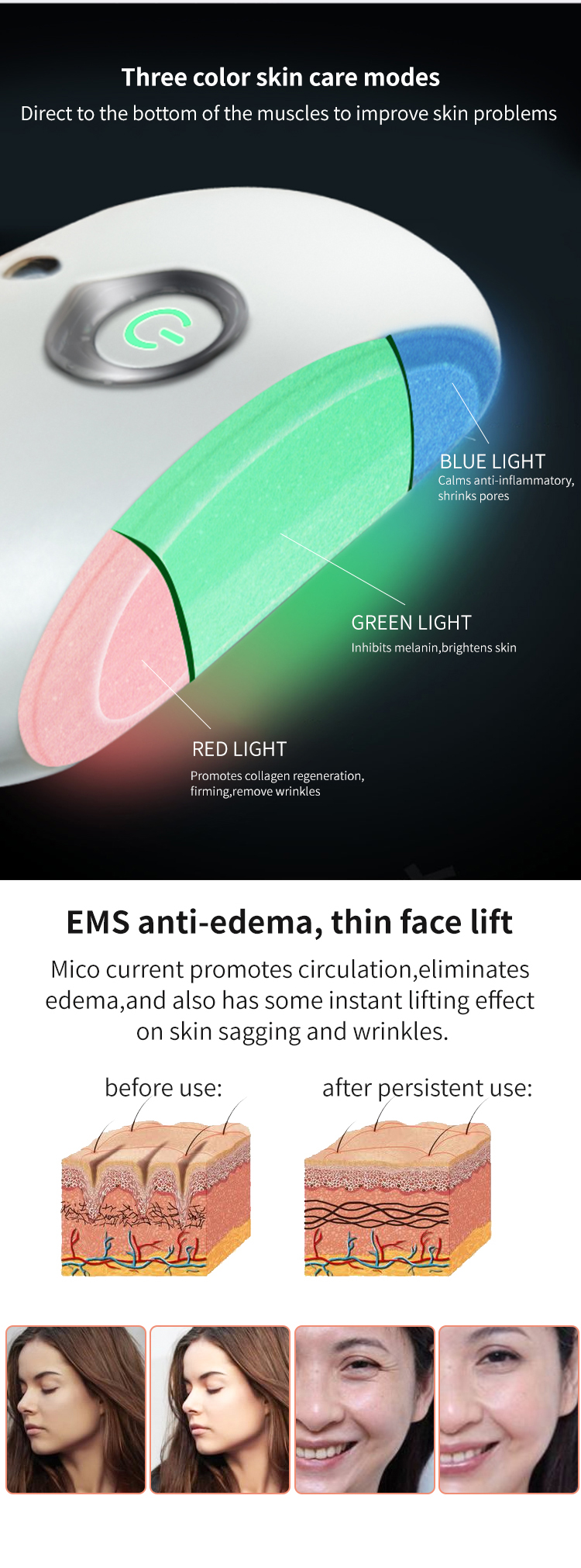 3.EMSマイクロカレント、筋肉の動きを活発にし、肌を引き締め、リフトアップします。