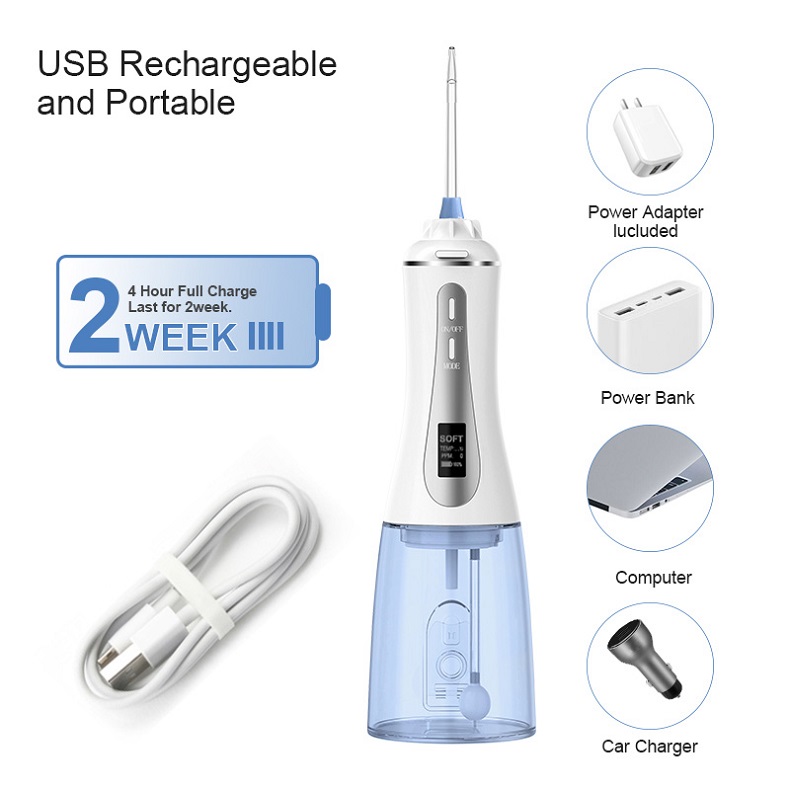 このウォーターデンタルフロッサーは、強力な環境に優しいバッテリーを搭載し、他の製品より 2 倍のバッテリー寿命を誇ります。3 時間充電するだけで、30 日間使用できます。コンパクトで軽量なので、自宅や外出先での使用に最適です。このウォーターデンタルピックには USB ケーブル (アダプターは付属していません) が付属しており、旅行用キットとして最適です。30 日間という非常に長いバッテリー寿命を活用でき、本当にポータブルなソリューションとして便利です。