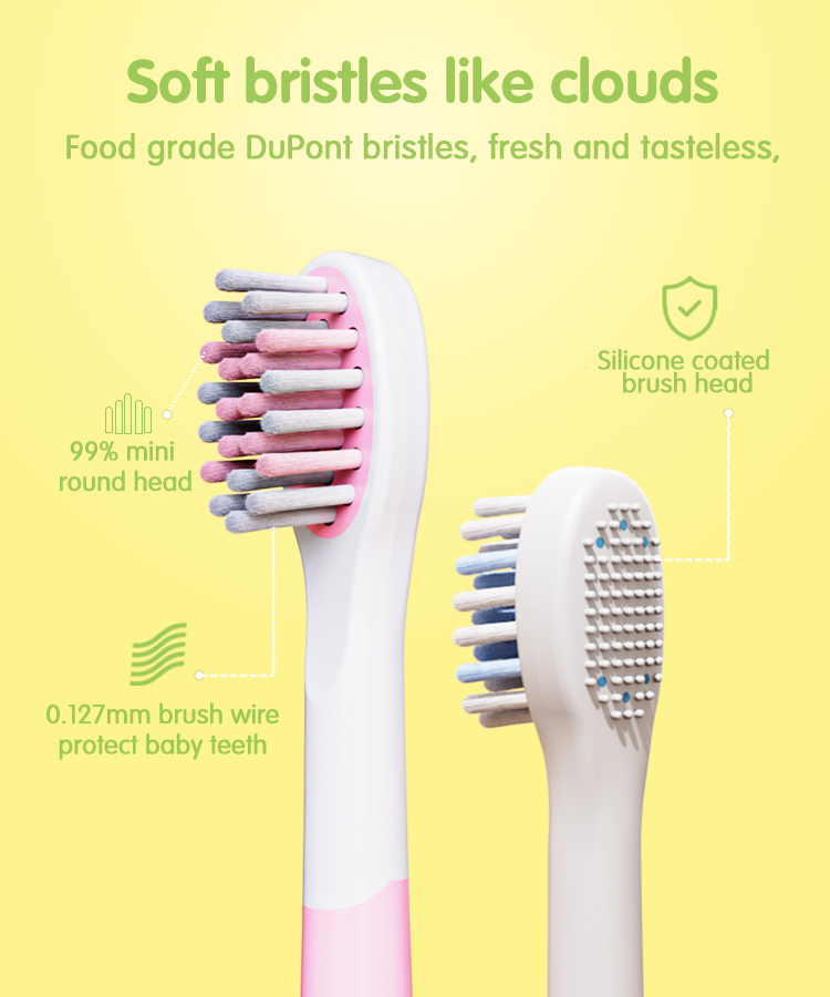 - ワクワクして楽しい歯磨き:かわいい動物をテーマにしたデザインで、お子様が歯磨きに夢中になります。3D カーブの柔らかい毛が付いたユニークな小さなブラシヘッドは快適で効率的で、お子様の歯茎や小さな口に最適です。