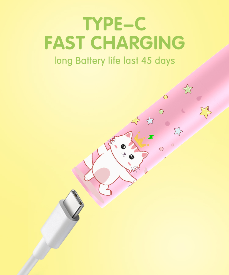 - 非常に長い燃焼寿命: この充電式子供用電動歯ブラシは、わずか 3 ~ 4 時間の充電で最大 60 日間使用できます。自宅でも旅行中でも簡単に使用でき、毎日の歯磨きを続けることができます。