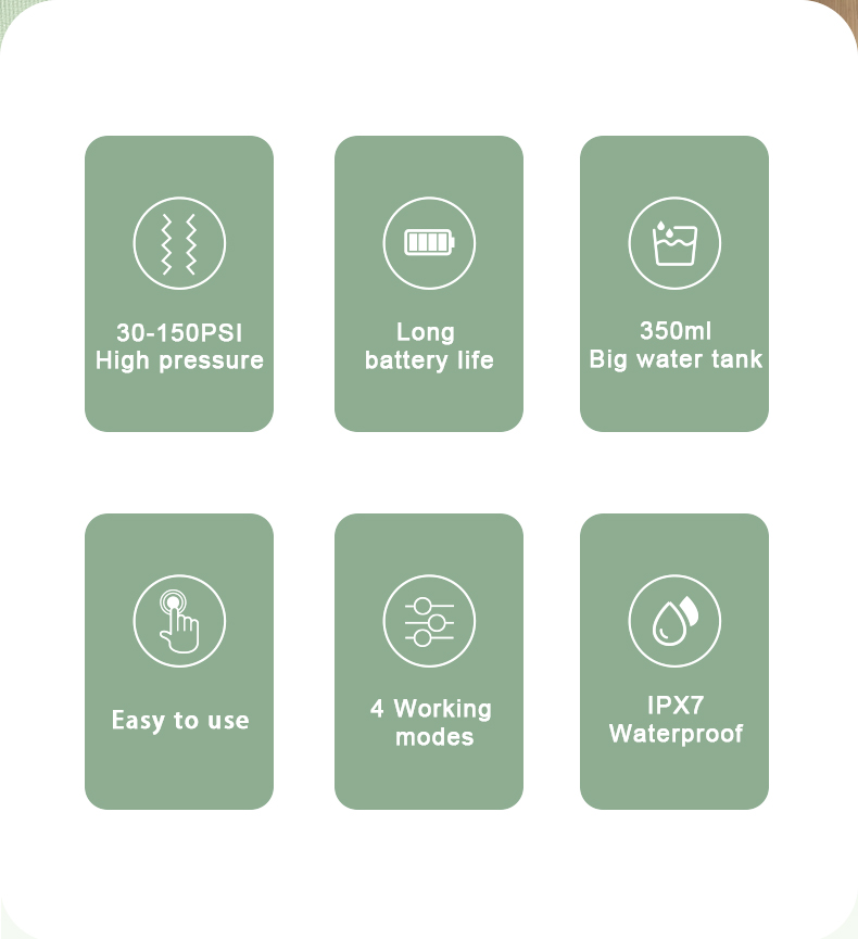 当社のワイヤレスウォーターデンタルピックは優れた防水性を誇り、簡単に洗浄でき、シャワー中でも安全に使用できます。